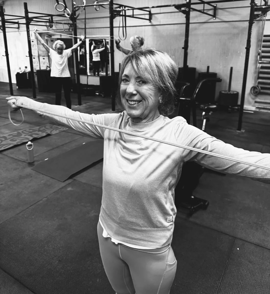 Leslie Crawford, 77, brings an inspiring energy to our gym community. Originally from Washington, DC, Leslie previously worked in mortgage banking, the Chamber of Commerce, and with Xerox before finding her way to CrossFit through her niece, Joy Yancy. Joy encouraged her to try the new Life Class, and Leslie says she is so glad she did. She especially enjoys upper-body and core work, while continuing to focus on improving her lower-body strength. Outside the gym, CrossFit has made her more aware of just how important it is to keep moving and staying active. One of her proudest accomplishments so far is learning to jump rope — something she couldn’t do just six months ago but now celebrates with enthusiasm. What she loves most about the gym is meeting so many kind people who truly care about one another’s wellbeing, along with coaches who are always willing to help. Leslie is motivated by her desire to keep getting stronger for as long as she can, and if she could design her own workout, it would definitely include upper-body and core exercises. Her go-to post-workout treat is a simple bowl of oatmeal. A fun fact many people may not know is that when her great-nephew Zac was a baby, he nicknamed her “TeTe,” and now everyone affectionately calls her TeTe or Aunt Leslie — a title she absolutely loves.