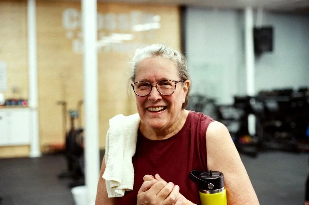 Since then, CrossFit has become an important part of Gretchen’s life. Deadlifts are her favorite lift, and her favorite workout is Helen. One of her proudest moments in the gym came the night she achieved a 215-pound deadlift. Outside the gym, CrossFit has helped her maintain the strength and health needed for independent living, aside from the typical aches and pains that come with age. What she loves most about the gym community is that it doesn’t matter how old you are or what your fitness level may be—everyone is welcomed and supported.
